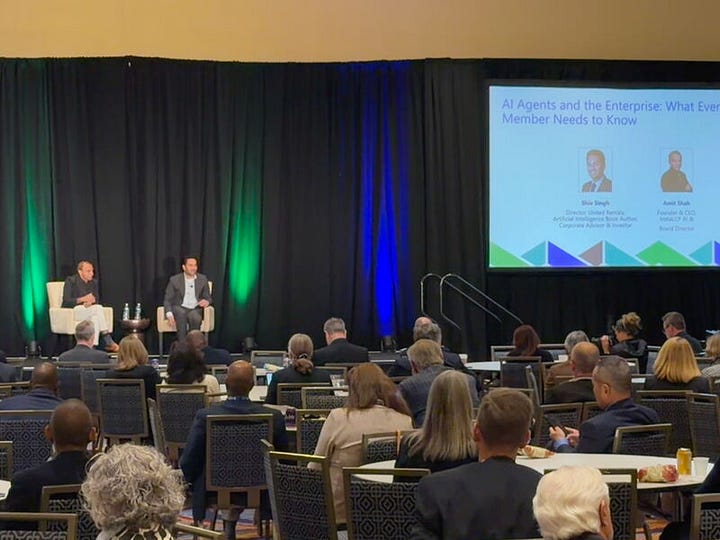 I recently had the privilege of speaking at the National Association of Corporate Directors (NACD) Annual Summit on Agentic AI and the Boardroom. This was the third time I was on stage at the NACD Summit and I represented United Rentals, a $15 billion revenue company with 30,000 employees, where I have had the honor of serving as a board director for several years. Joining me was Amit Shah, Founder and CEO of InstaLILY AI (where I’m an investor) for a conversation on how Agentic AI is reshaping corporate governance, workforce dynamics, and strategic oversight.